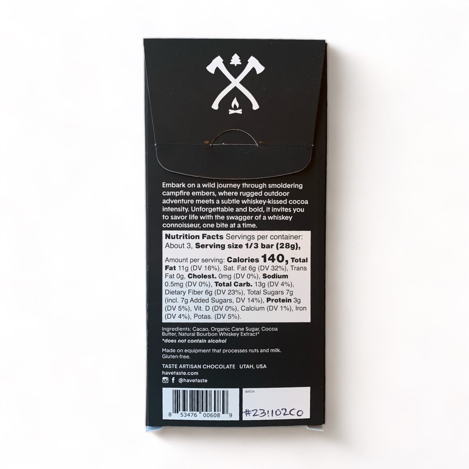 Embark on a wild journey through smoldering campfire embers, where rugged outdoor adventure meets a subtle whiskey-kissed cocoa intensity. Unforgettable and bold, it invites you to savor life with the swagger of a whiskey connoisseur, one bite at a time.