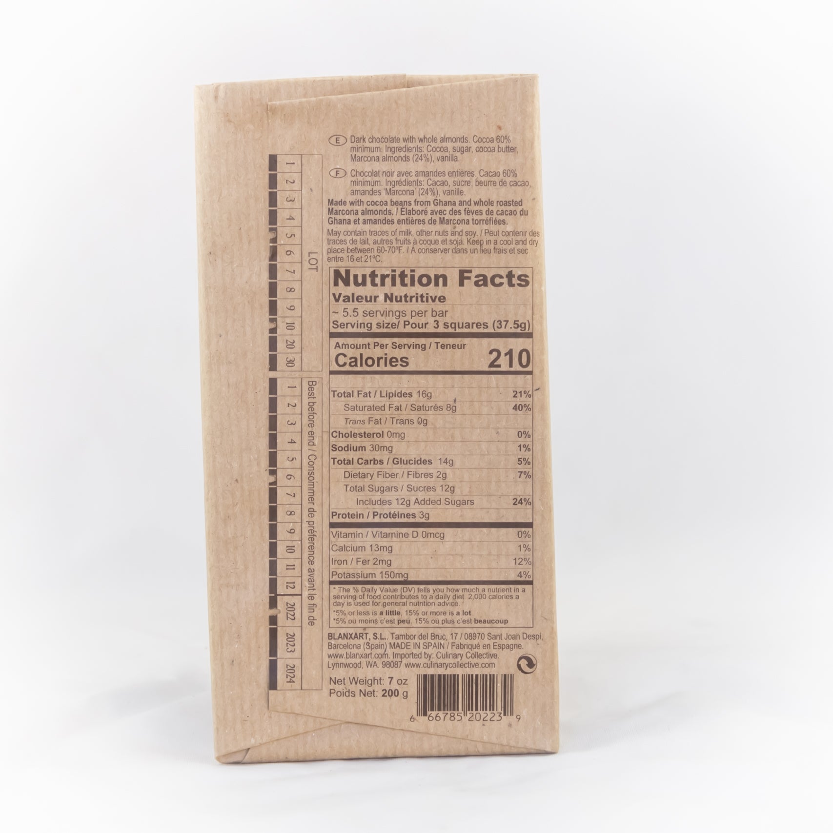 This gorgeous offering not only uses organic cacao, but also has a generous helping of Marcona Almonds embedded within! Never let it be said that Blanxart doesn't know how to treat their people right. Almonds, chocolate, and value, oh my!
