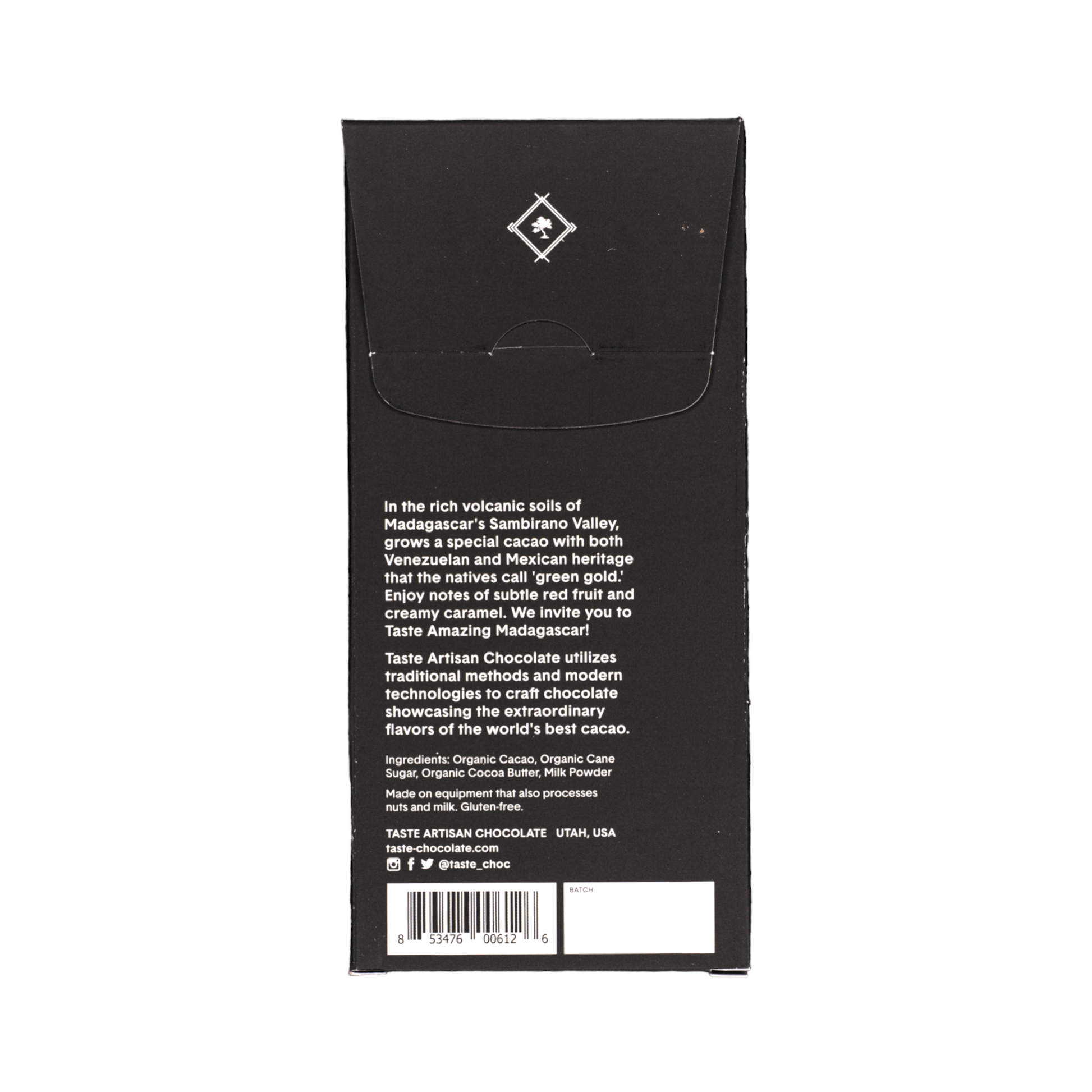 In the rich volcanic soils of Madagascar's Sambirano Valley, grows a special cacao with both Venezuelan and Mexican heritage that the natives call 'green gold.' Enjoy notes of subtle red fruit and creamy caramel. We invite you to Taste Amazing Madagascar!